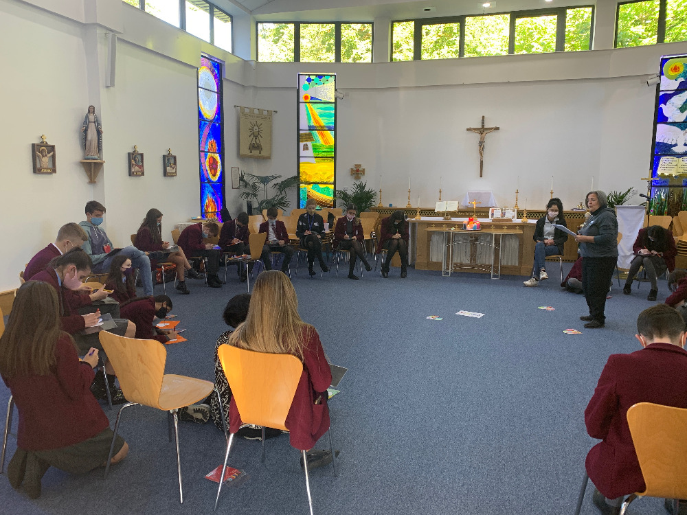Do oratoře za námi potom každou vyučovací hodinu (50 min) přijde jedna třída, které se nejprve představíme a společně si zahrajeme nějakou rychlou a dynamickou hru. Potom už následuje konkrétní aktivita, která má mladým lidem dát prostor pro zamyšlení nad modlitbou, jejich vlastními talenty a dary, nebo třeba nad tím, za co můžeme být vděční a čím jsme byli obdarováni. To vše se děje pomocí navození klidné atmosféry a posléze vytvořením něčeho hmatatelného, což si potom mohou odnést domů. Je to např. vlaječka, kde si každý napíše nebo nakreslí to, za co děkuje a co mu působí radost. Nebo také barevné srdce znázorňující jedinečnost každého z nich. Takových lekcí máme během dne 4 až 5. Ve třídě je průměrně 30 žáků (studentů), tzn. že se během jednoho dne setkáme až se 150 studenty. Když to takto napíšu, přijde mi to fascinující.