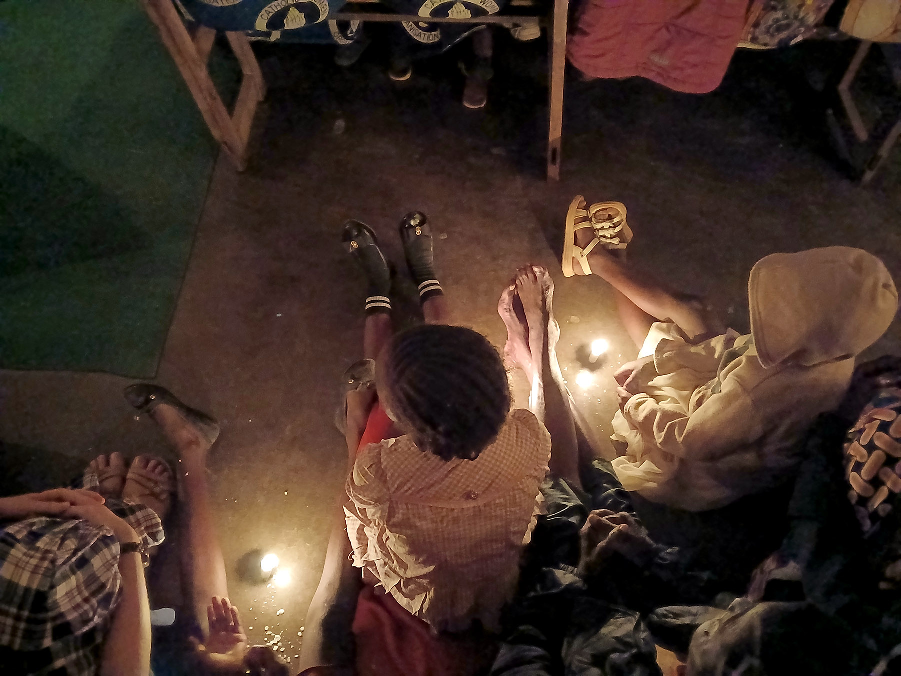 Slavení velmi podobné tomu u nás. Nechyběl obřad umývání nohou. A po mši následovala dlouhá adorace. Tentokrát jsme byli v kostele, kam se vejde ještě míň lidí než do haly, takže zase jako sardinky.
