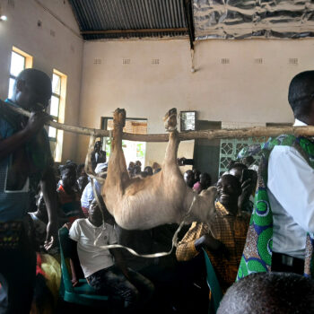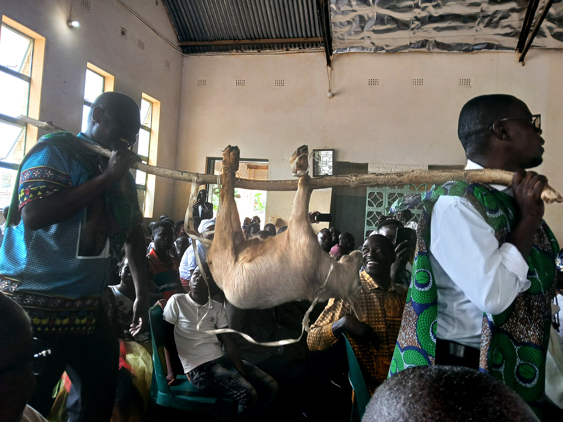 Ani dnešní mše se nechtěla nechat zahanbit, slavilo se 3 a čtvrt hodiny. Během přinášení darů lidé kromě peněz do sbírky přinášejí všechno možné. Ať už to jsou vajíčka, kukuřice, brambory, sladké brambory, cibule nebo třeba cukrová třtina ze zahrádek, prací prášek, mýdlo nebo toaleťáky. Někdy komunita dostane i pytel mouky. Celkem častým darem je živá slepice. Ve výjimečných příležitostech to tímto průvodem nekončí a některá ze skupin ve farnosti připraví ještě zvláštní dar. Tomu pak předchází průvod tanečnic – holčiček v bílém, bubeníci s africkými bubny, tančící ženy a nakonec samotný dar. Kromě velké mísy s jídlem to dnes byla živá koza! Přinesli jí dva muži přivázanou za nohy na tyči. A i s ní celou dobu tancovali a poskakovali. Člověk se tu nenudí…