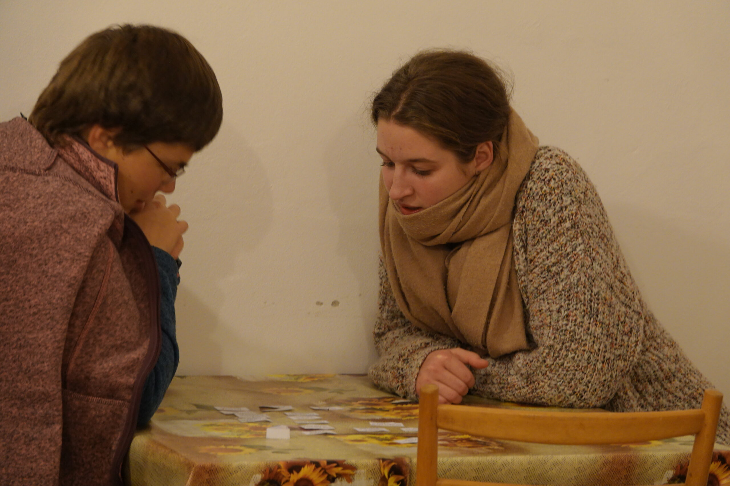 V pátek jsme se sešli v Hradci Králové u sester Salesiánek v Kuklenách a začali společnou večeří. Protože se od minule velmi promíchala sestava dobrovolníků v přípravě, byl večerní program věnovaný seznamovacím hrám s prvky dramatizace.