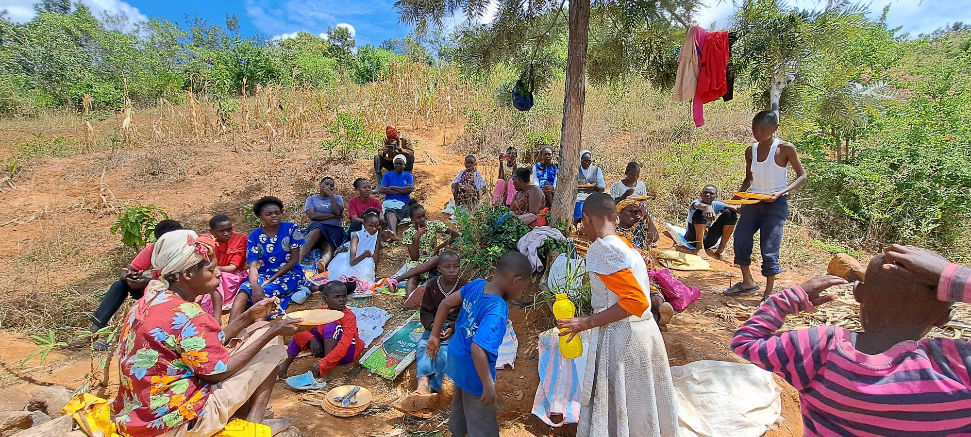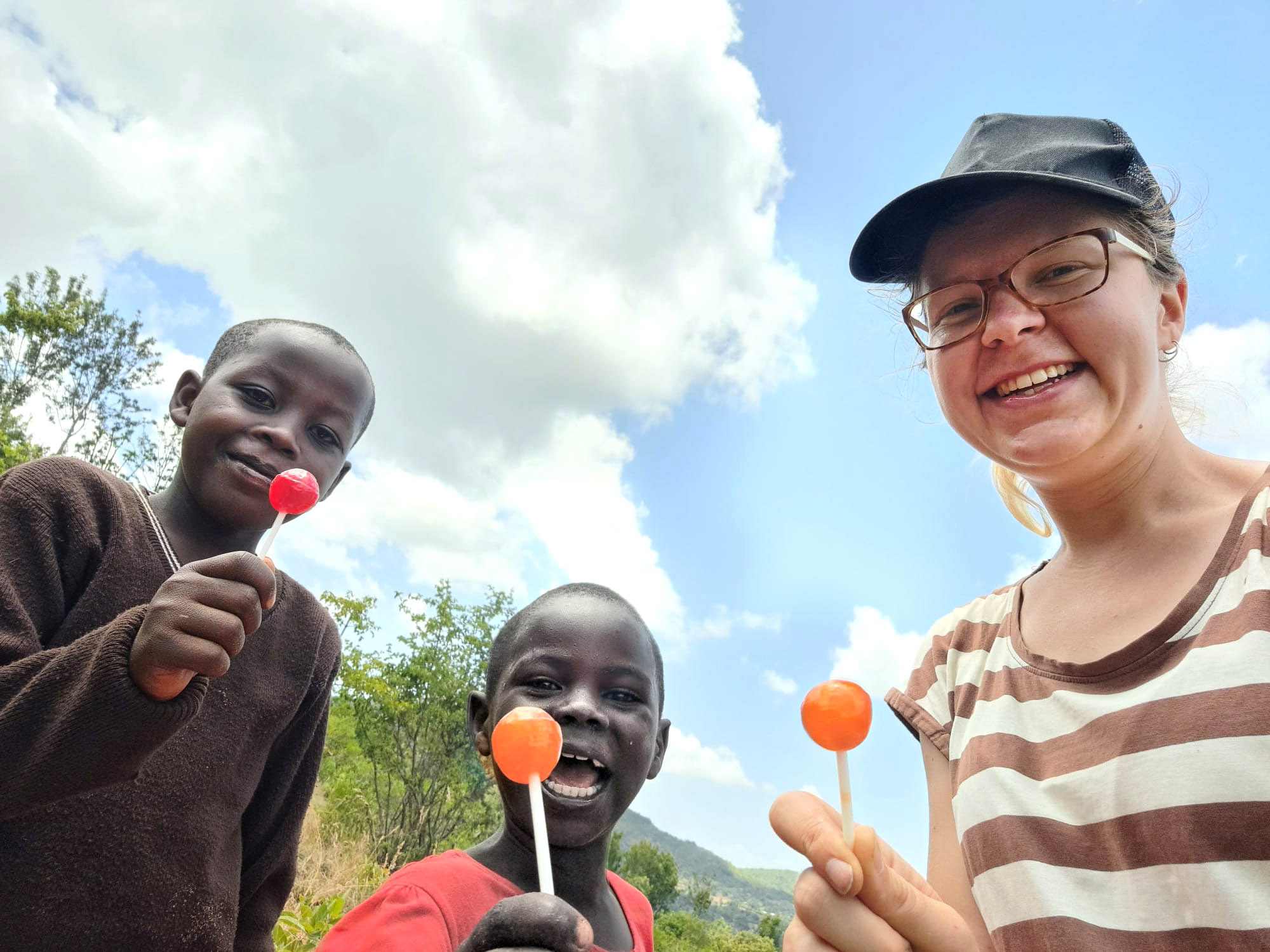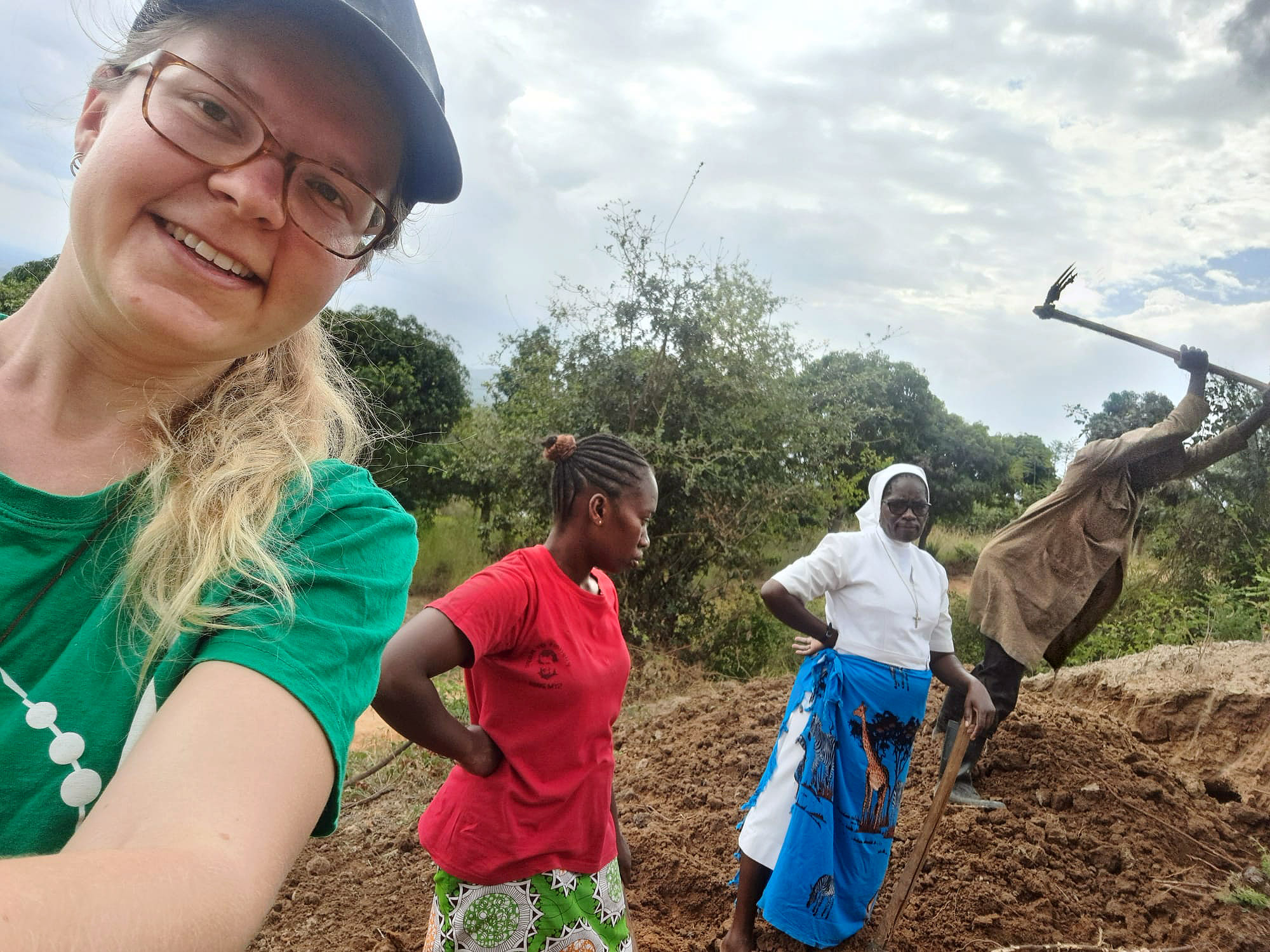 Další akce, kterou jsme podnikli a nazvali “charity work”, byla práce na novém domě rodiny jedné dívky, která tu u nás bydlí v domově. V plánu jsme měli tvořit cihly a vypadalo to, že snad začneme i ten den přímo stavět. Bohužel ale máme období dešťů, a tak by cihly z hlíny nestihly uschnout. Tak jsme alespoň kopali, abychom si připravili vhodnou půdu a také jsme přinášeli z kopce spoustu kamenů, které se později použijou. Zapojili se všechny věkové kategorie – děti, mládež i mamas. Ten den jsme opravdu zamakali a já jsem byla spálená od ostrého sluníčka. Stavba se odsunula na slunnější dny, ale věřím, že se opravdu dokončí a rodina tak bude mít lepší bydlení, než má doteď.