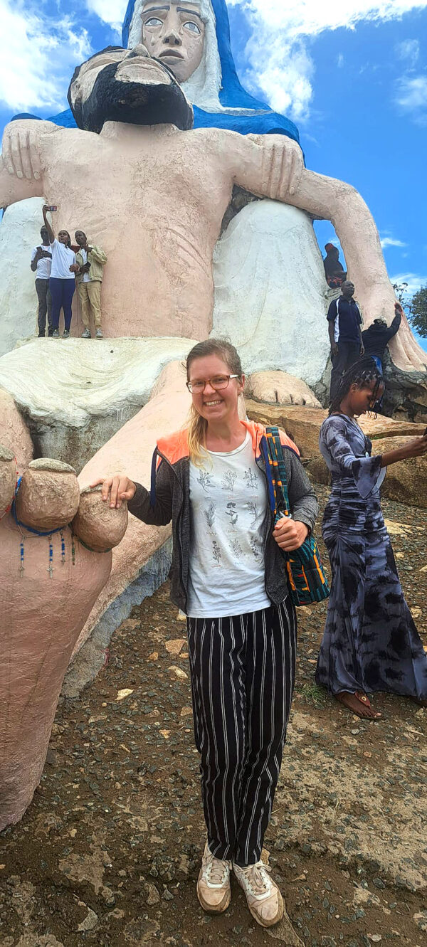 Nevěděla jsem, co si představit, ale těšila jsem se na výlet, na který jsme jeli spolu s pracovníky našeho komplexu. Místo se nacházelo až za Nairobi, takže jsme jeli asi 3,5 hodiny tam a mačkali se v matatu jako sardinky, ale stálo to za to. Na místě se nacházela křížová cesta, kaple a obří sochy, ke kterým se dalo vyšplhat po mírném svahu. Celý den byl vlastně taková duchovní obnova. Prošli jsme si křížovou cestu, měli přednášku a mši. Když jsme vyšli na horu, mohli jsme se vyfotit s obrovskou sochou pána Ježíše s Marií. Kněz nám říkal: „Teď, když jsme se konečně vyšplhali na tuto horu (zabralo nám to asi 10 minut :D), nezapomeňte se i duchovně vyšplhat a proměnit svá srdce.“ A pak nám povídal příběh o oslíkovi. Jednomu majiteli spadl osel do studny, a tak poprosil sousedy, aby mu ho pomohli vytáhnout. Nikdo nechtěl. Tak je poprosil znovu. Zase nikdo. Tak se majitel rozhodl, že to zkusí jinak. Řekl lidem, že oslík ve studně umřel a že ho potřebuje zakopat. Sešlo se spoustu lidí a házeli do studny hlínu. Oslík byl ale chytrý a po každém vhození ze sebe hlínu oklepal a postavil se o kus výš. Když konečně vyšel ven ze studny, lidé byli překvapení. Majitel jim řekl, že to udělal, aby mu někdo pomohl. A pak nám kněz řekl, že máme být jako ten oslík – nenechat se odradit překážkami, ale vždycky se oklepat a stoupat výš. Oklepat a stoupat výš.