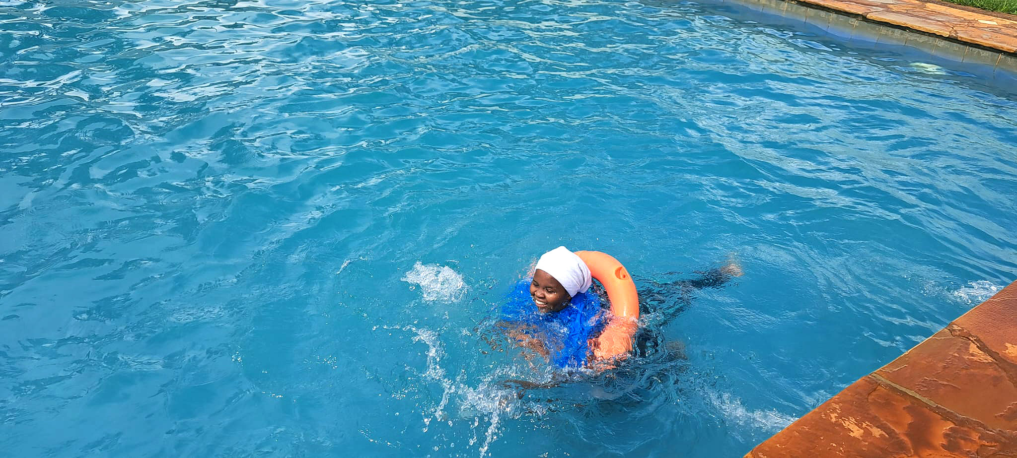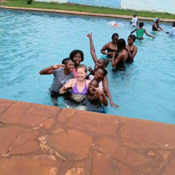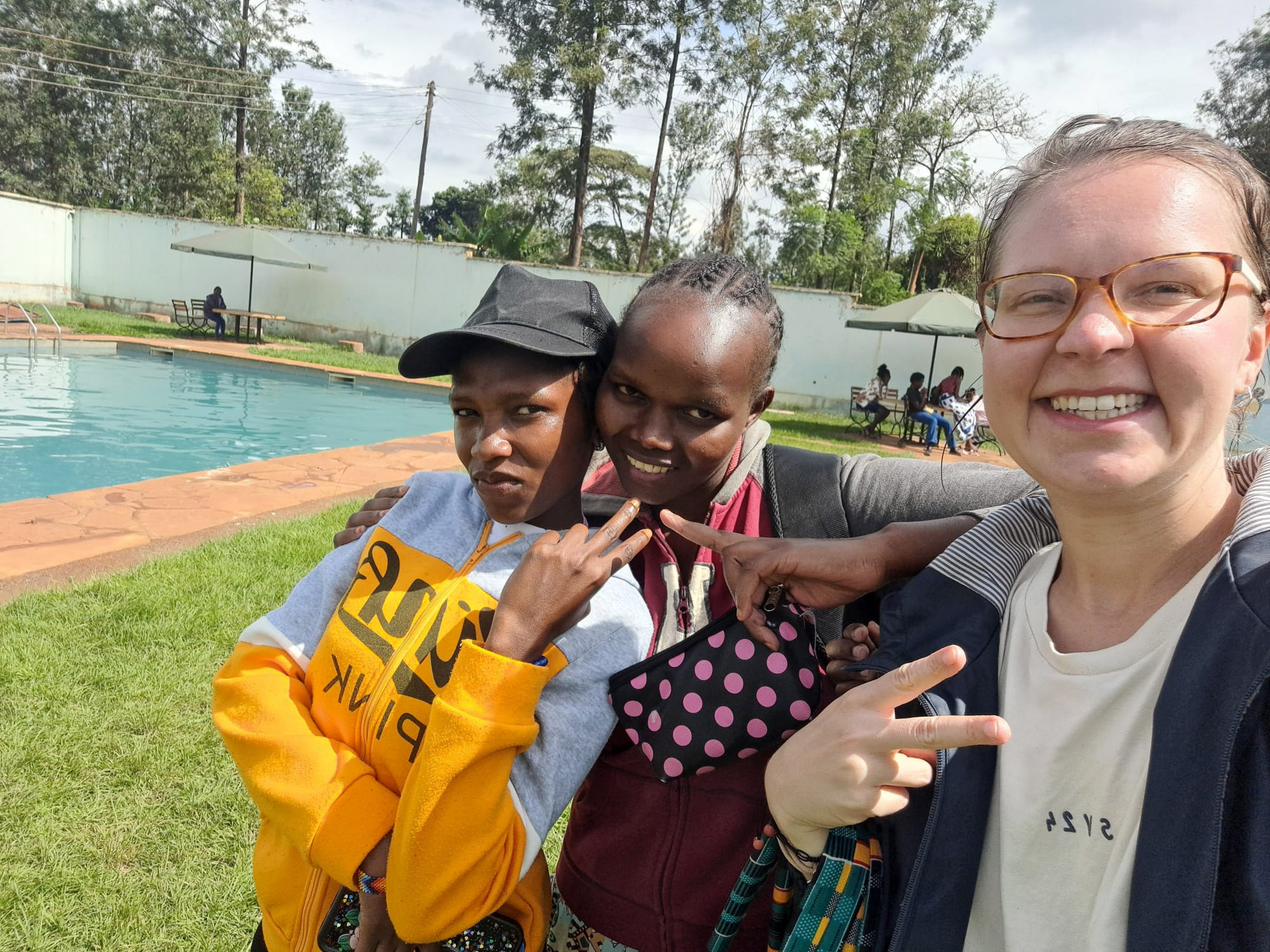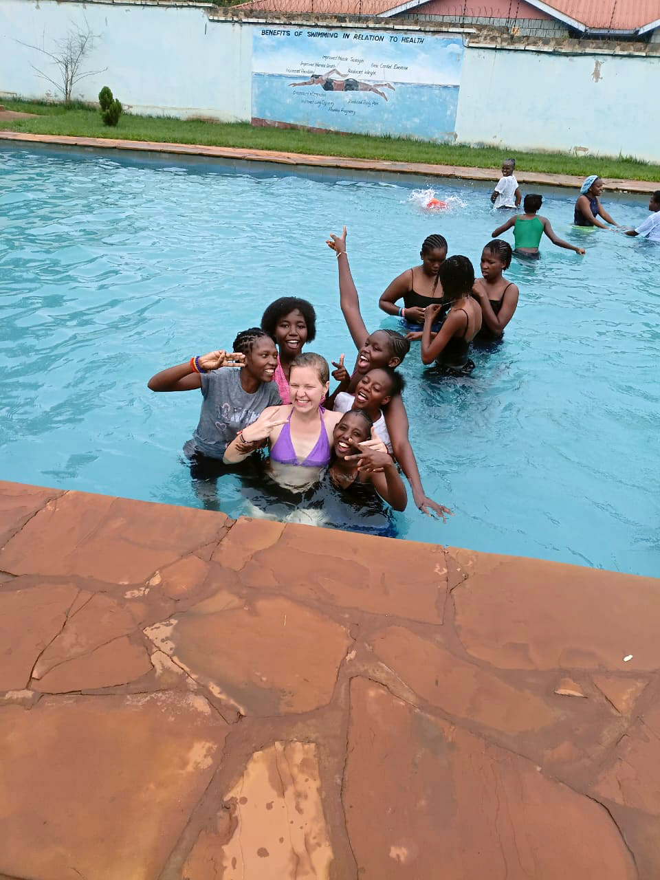 Minulý týden jsme za odměnu vzaly studentky plavat. Jely jsme do vedlejšího města Embu, kde jsme mohly využít bazén spřátelených sester. Všichni se moc těšili, i když půlka z nich neuměla plavat! Téměř všichni ale vlezli do vody a pohybovali se tam, kde dosáhli. Hodně z nich jsem se snažila naučit plavat, myslím, že několik z nich se opravdu snažilo a na konci jsem viděla velké zlepšení. Byly tam i záchranné kruhy, které jim pomohly trénovat a nebát se zkoušet si plavecké pohyby. Začátek však provázel křik a velký strach z vody. Ve vodě jsme zůstaly snad tři hodiny, opravdu nás to bavilo.