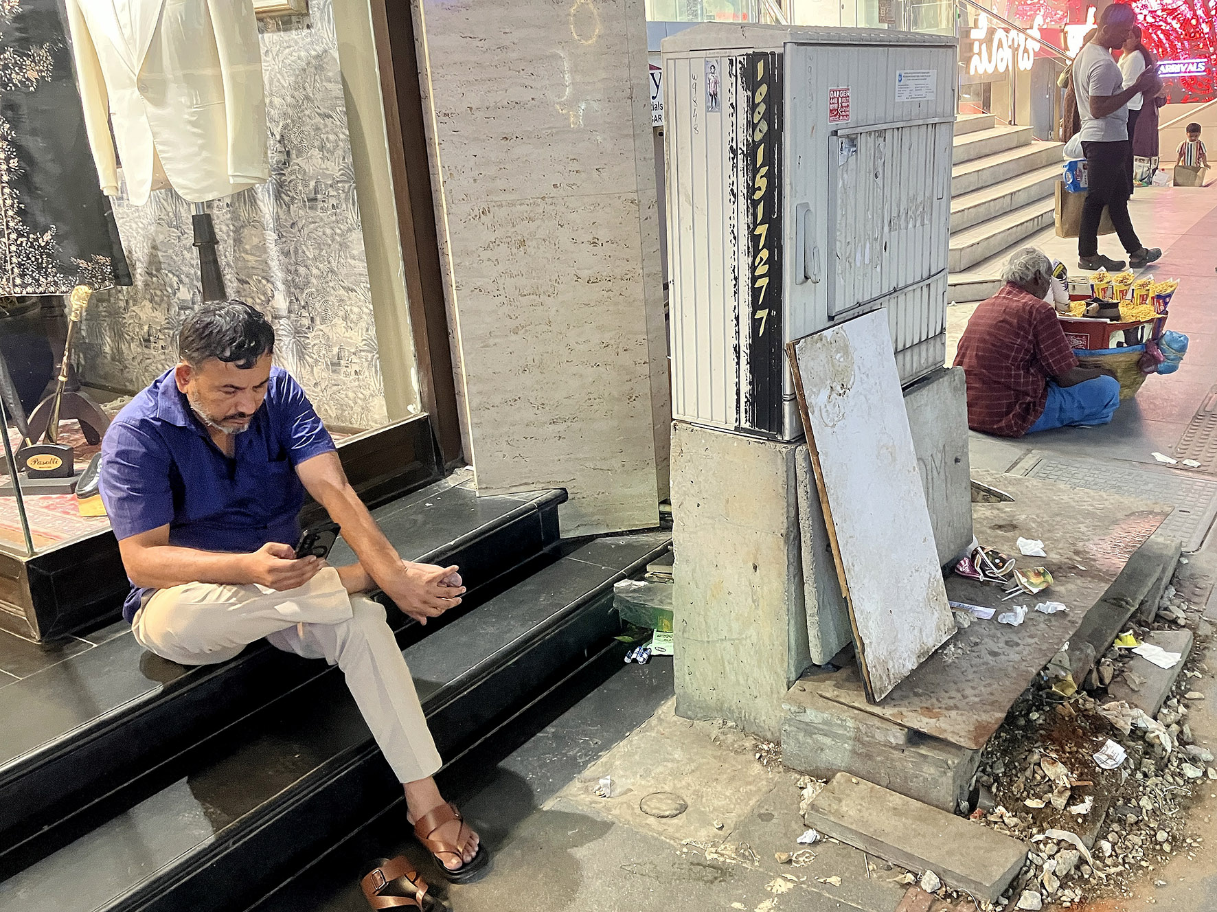 Dvě ulice jsou dva světy, které se protínají. Jeden je plný trhovců se zbožím za pár rupií, které je namačkáno v provizorních mnohdy ilegálních stáncích, procházíte tlačenicí a vůbec netušíte, do čeho šlápnete. Druhý z těchto světů si zakládá na obchodech s těmi nejluxusnějšími značkami, po stranách je vydlážděná pěší zóna, pořád se musíte vyhýbat odpadkům, občas ucítíte závan klimatizace. Tohle všechno je Indie – rychle se rozvíjející společnost zaměřená na technologický pokrok a globalizaci (třeba obchody Baťa a škodovky jsou tady úplně všude) a zároveň země s propastnou sociální nerovností, kde pořád většina obyvatel žije na hranici chudoby v nehygienických podmínkách a je odkázána na nefunkční infrastrukturu.