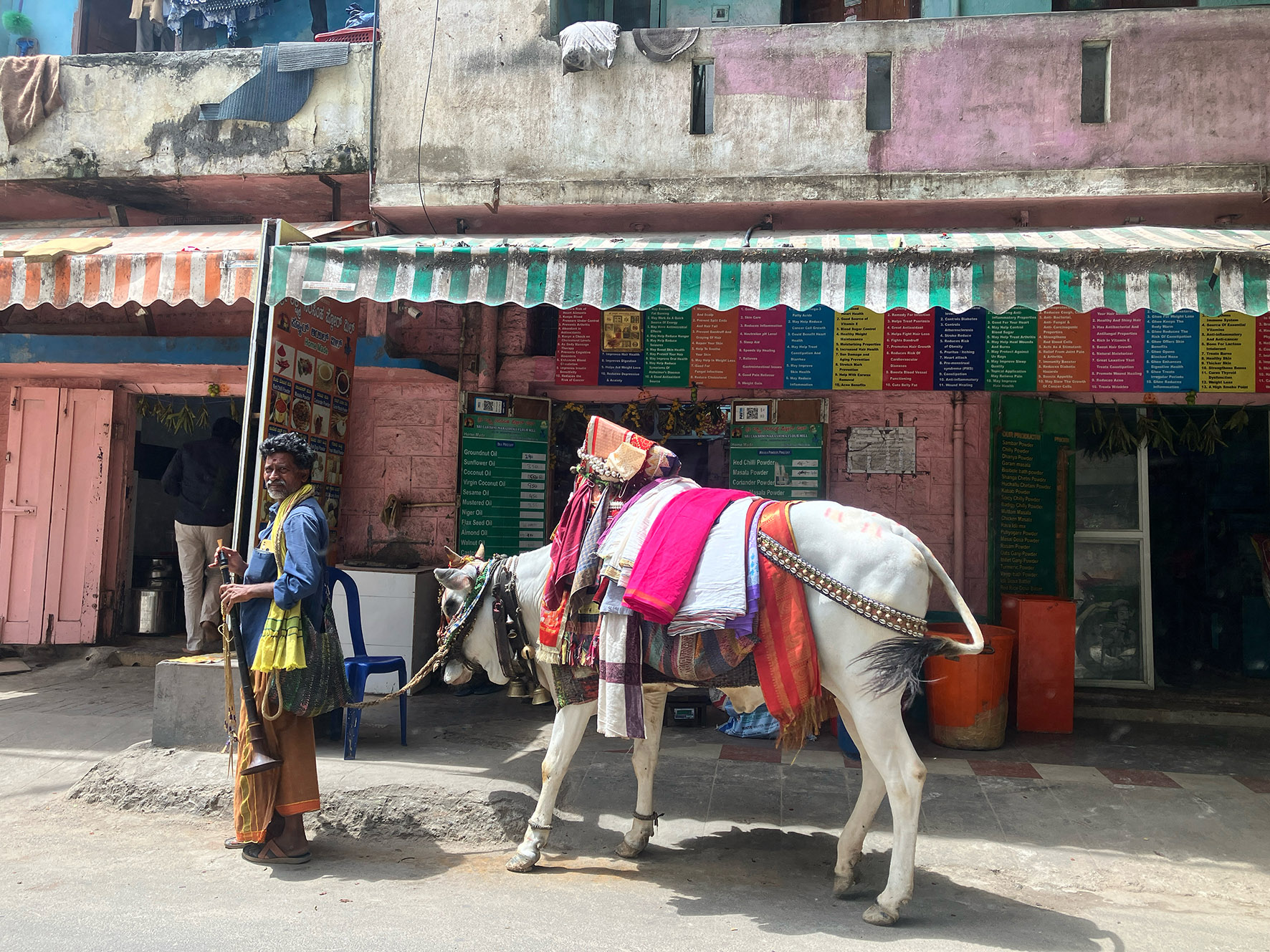Průnik konzumního světa a tradiční struktury. Pro mě je to učebnicový příklad důsledků kolonizace a globalizace. Pro lidi tady realita! Z okýnka rikši máte možnost spatřit životy tisíců lidí, s nimiž se na prchavý okamžik propojíte… Doprava a nepořádek jsou dva zásadní problémy, jimž musí obyvatelé 15milionového stále se rozrůstajícího města dennodenně čelit. Chodníky jsou povětšinou v takovém stavu, že lidi radši chodí po silnici. Na které se musí vyhýbat nepředstavitelnému množství rikš. A taky motorkám, autům a kravám. Tomu všemu dávají přednost před chodníky s všudypřítomnými odpadky, výmoly a psími výkaly. Všude je nepřetržitě slyšet troubení. Nejprve jsem si myslela, že to všichni dělají jen tak ze zvyku… Postupně jsem zjistila, že tím docela sofistikovaně komunikují. Hlavní sdělení zní: „Pozor měním směr jízdy“ a „Uhni mi z cesty“. A tak se není třeba divit, že v tom chaosu troubí radši pořád. Auta a autobusy stojí v zácpě, v metru není k hnutí, na motorku všichni nemají dostatek prostředků a je těžké tu někde zaparkovat… Více rikš pohromadě než tady v celé Indii neuvidíte. Rikšou se dostanete všude. Stačí si ji vyhledat na Uberu, nebo se dá smlouvat na místě, ale k tomu je dobré mít přehled, kolik by to mělo stát, a umět kanadsky. I tak někteří radši zůstali věrni staré tradici a spolu s posvátnou krávou stojí u dveří a prosí…